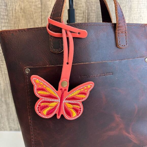 This is the Butterfly Purse Charm by Portland Leather Goods. They call it the Monarca Charm, and it’s in the shape of a monarch butterfly. This is a great gift for mom, Valentine’s Day, Christmas, for the nature lover. The monarch butterfly is a classic and this is a beautiful real leather charm.