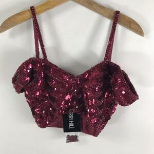 Sherri Hill 51934 Burgundy Sequin Two Piece Evening Gown. Size 2. New with tags. See pics for best representation.