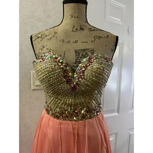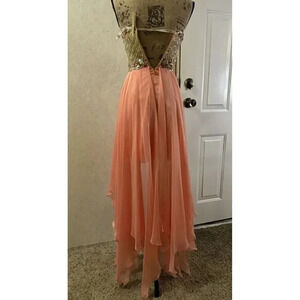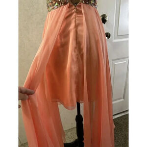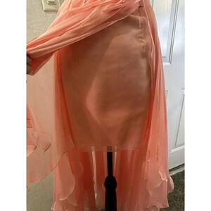 SHERRI HILL Coral Pink Nude High Low Cocktail Dress Sz 00 Rhinestone Whimsical