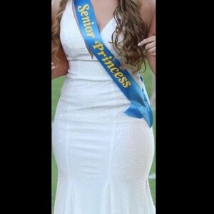 Beautiful Elegant & Formal Prom/Homecoming/Wedding/Bridal/Pageant/Dress/Gown Iridescent Embellishments Fit and Flare White Color Size 6