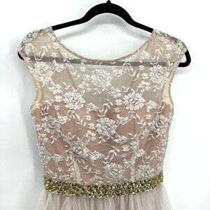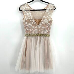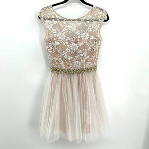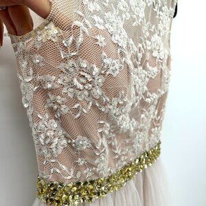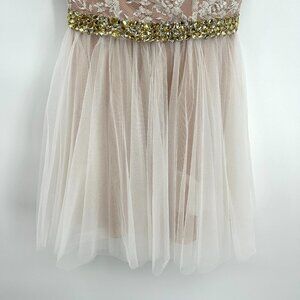 SHERRI HILL Nude White Yellow Gem Lace Ballerina Tulle Fit & Flare Mini Dress 4