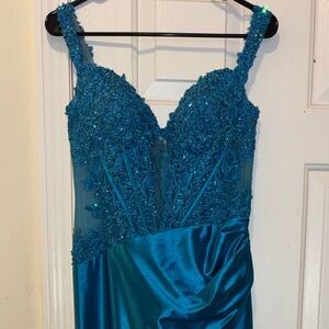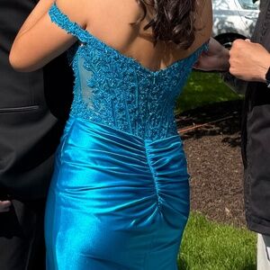 SHERRI HILL OFF SHOULDER LACE CORSET DRESS 56702 Color: Peacock Size:10