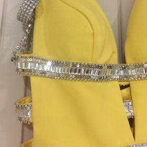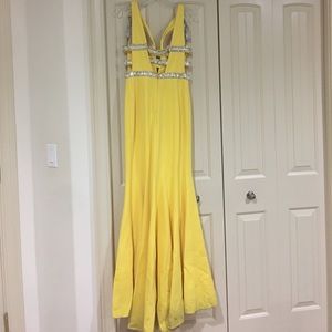 Beautiful Sherri hill prom dress in yellow with crystal detailing, I've also added more crystals to the shoulder area dress is only worn one time. Dress bottom needs cleaning.