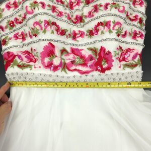 SHERRI HILL Strapless Chiffon Rhinestone Embroidery Embellished Prom Gown White