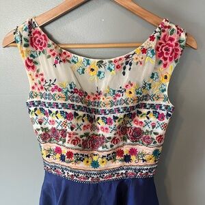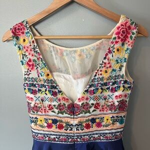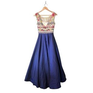 SHERRI HILL Vintage Folk Floral Embroidered Multicolor Gown