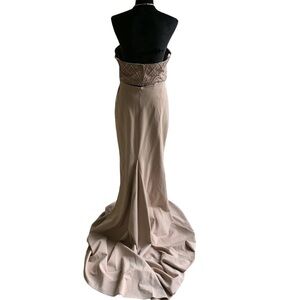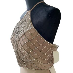 SHERRI Hill 2 Piece Beaded Halter Tan Gown