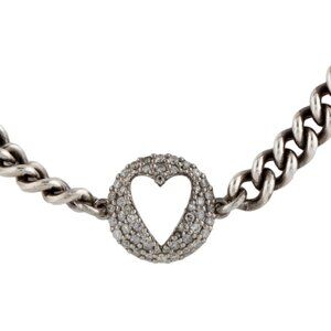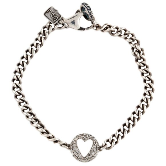 SHERYL LOWE DIAMOND 0.33 CTW STERLING SILVER OPEN HEART CHARM LINK BRACELET