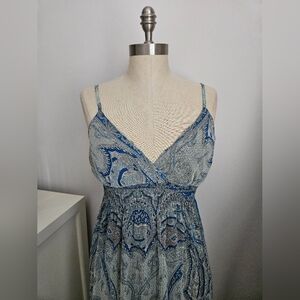 SHE'S COOL Blue Paisley Spaghetti Strap Maxi Dress | SZ M