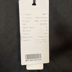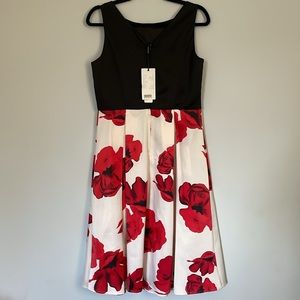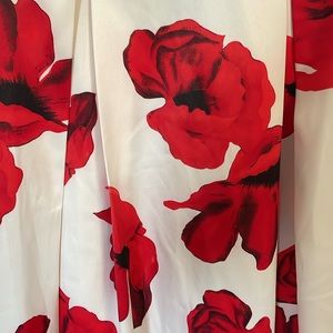 SHE’S t-length dress with red flower detail on the pleats and a black sleeveless top - silky material.