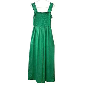 SHE+SKY Stretchy Smocked Wide Leg Jumpsuit Green Size M