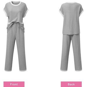 SHEWIN Lounge Set - Cap Sleeve Knit Sweater Top with Pocket Wide Leg Pant - Grey