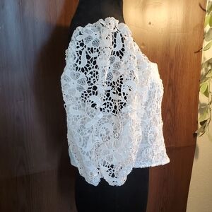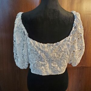 SHIEN Curve White Off Shoulder Lace Crop Top