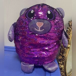 Super cute cat plushie! Reversible Sequins go from Purple to silver.