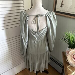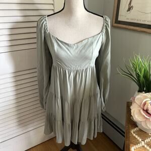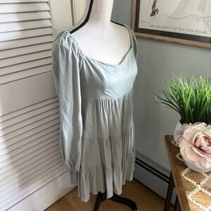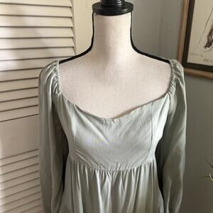 SHINESTAR Dress Womens Medium Sage Green Babydoll Milkmaid Balloon Sleeve Retro