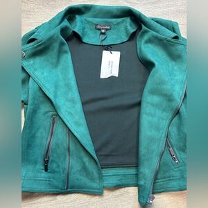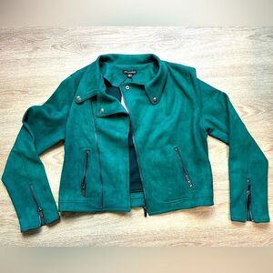 🆕 SHINESTAR | Emerald Green Faux Suede Moto Jacket Size Large NWT