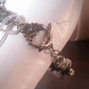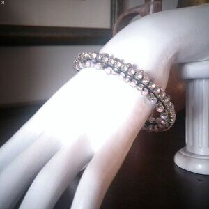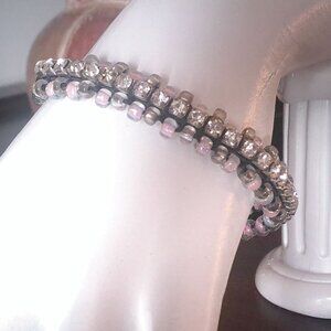 SHINE-UP PLUS Bracelet Triple Beaded Across White/ Diamond Like Size 7 1/2"