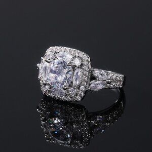 Shiny Round CZ Square 925 Silver Luxury Wedding Rings for Women, L053