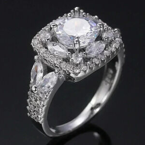 ▶SHINY ROUND CZ SQUARE 925 STERLING SILVER LUXURY WEDDING RINGS FOR WOMEN, L053