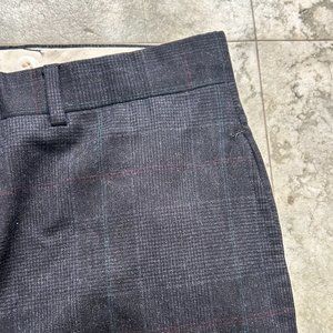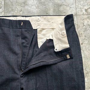 SHIPS FREE! Dark Navy Blue Plaid Wool Dress Suit Pants 32Wx28L