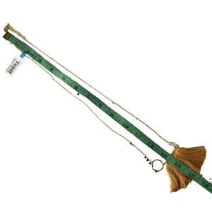 SHIRALEAH New Gold Tone Palma Saffron Fringe Stone Delicate Necklace NIP Anthro