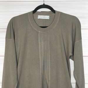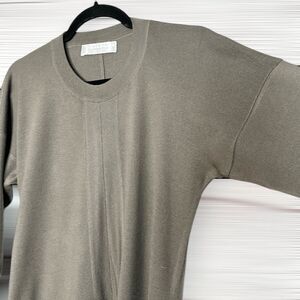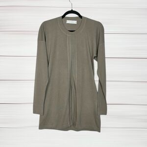 SHIRIN Scotland Tunic Long Sweater Gray Lightweight Split Front, Crew neck, drop shoulder sleeve