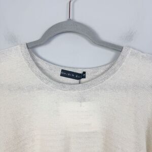 Stunning cream, color sweater with grey stripe & trim detailing by Shirin Guild. Round neckline. Long sleeves. Cashmere and linen blend. Super soft and cozy. Boxy fit. Lightweight. Great condition! Women’s one size fits most.