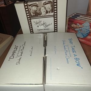 Calling all Shirley Temple Collectors! This amazing set will be the PERFECT gift for someone who LOVES Shirley Temple or for your own collection! 2 Danbury Mint 12-inch Porcelain Dolls in Original boxes & paper. Baby Take a Bow and Dimples Dolls. The Classical collector's plate in original box from Captain January and finally the boxed edition of Shirley Temple VHS Family Favorites with Heidi, Baby Take a Bow and Curley Top.