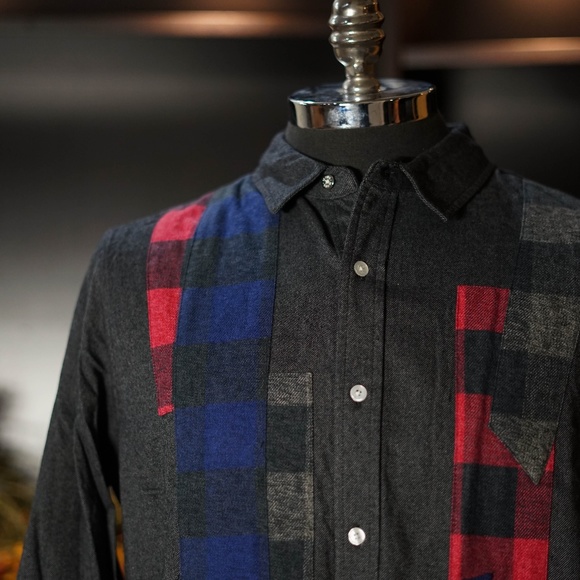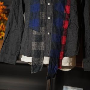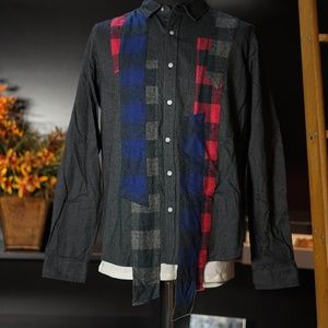 Patchwork flannel button up shirt.