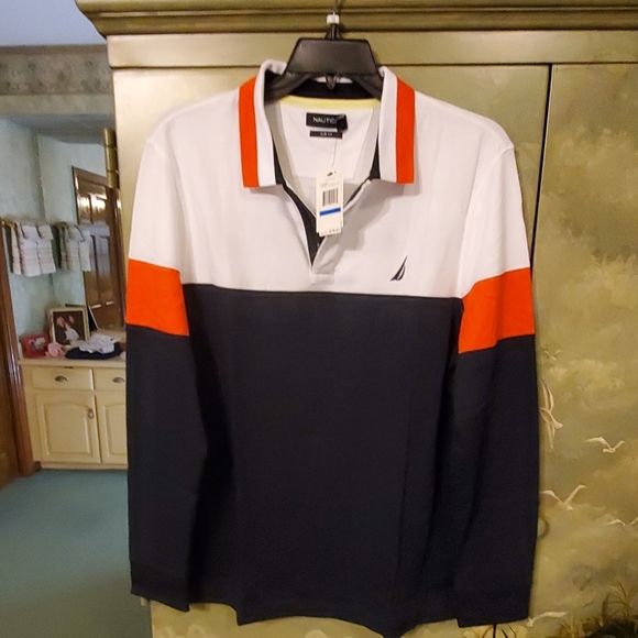 NAUTICA MENS LONG SLEEVE POLO SHIRT. BNWT NEVER WORN. SIZE XL SLIM FIT