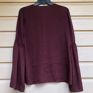 great condition size small burgundy color blouse. polyester material. 19in pit to pit, 24in sleeve,25 in long.