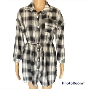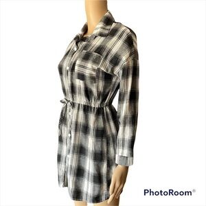 SHIRT DRESS BLACK & WHITE PLAID LONG SLEEVE Size M