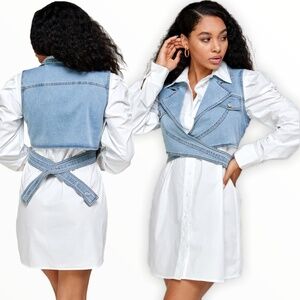 Shirt Dress w/wrap around Collar Denim Vest w/Bottom Back Strap