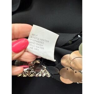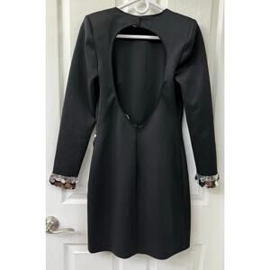 SHO Tadashi Shoji LOREN NEOPRENE MINI DRESS SAGD21330S-BK/PT Black with silver sequence slit Small long sleeve NWOT Retail $288