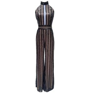 SHO by Tadashi Shoji Black Sequin Stripe Sleeveless Jumpsuit