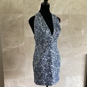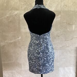 SHO by Tadashi Shoji Lara Sequin Lace Mini Dress 0 Blue Deep V Halter Cocktail