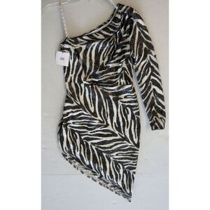 SHO by Tadashi Shoji Sz Small Zebra Print Gigi Asymmetrical Cocktail Dress