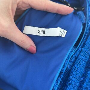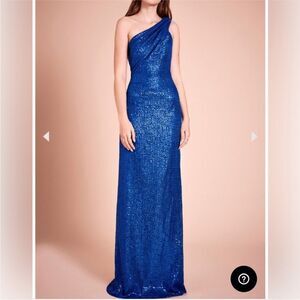 New without tags SHO by Tadashi Royal blue one shoulder side zip sequin gown dress black tie size 2 has stretch