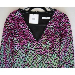 SHO x Tadashi Shoji Sz XXS Hot Pink Long Sleeve Paillette Body-Con Dress