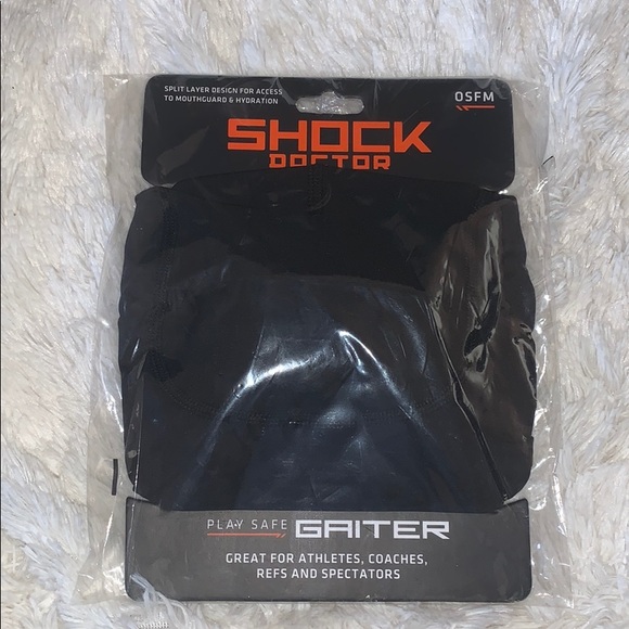 SHOCK DOCTOR split layer GAITOR that allows access to mouth for hydration or mouth guard with GAITOR on and more air flow for more oxygenation.