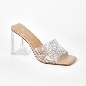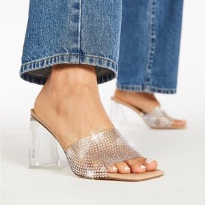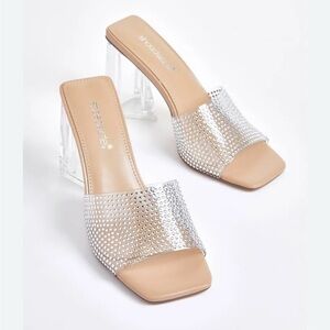 SHOE DAZZLE Vela Block Heeled Sandal Silver Rhinestone Slide Shoes Size 8 New