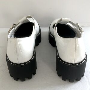 Step out in style with these white croc embossed Mary Jane platform lug rubber sole shoes. Perfect for any occasion, they offer both comfort and a chic look.