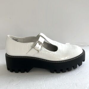 SHOE DAZZLE White Mary Jane Chunky Heels Platform T-Strap Pumps Preppy Size 11