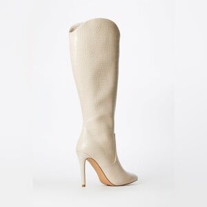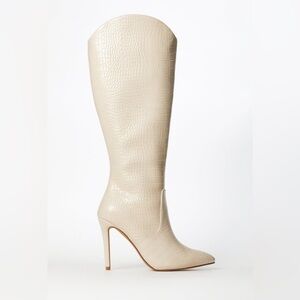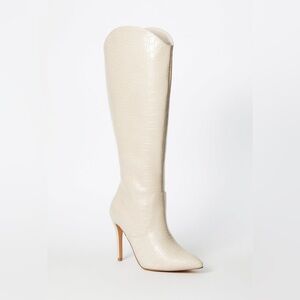 SHOEDAZZLE Women Paige Stiletto Beige Knee-High Boots Crock Embossed Size 10 New