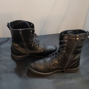 SHOELAND WOMEN"S KASEY HIGH TOP SNEAKER SIZE 71/2 COLOR BLACK SHAFT HIGH 5"LACE-UP SHAFT ROUND TOE SIDE ZIPPER MESH LINING RUBBER OUTSOLE 1 1/2" HEEL SLIP-RESISTANT MADE WITH ALL MAN MADE MATERIALS THIS ITEMS IS PRE-OWNED EXCELLENT CONDITION WITH ONLY LIGHT SIGNS OF WEAR IF ANY CHECK THE PICTURES (FYI THE FIRST PICTURES IS JUST A MODEL TO SHOW THE LOOK ON CHECK THE PICTURES.