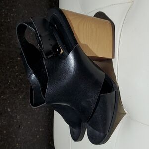 SHOEMINT BLACK LEATHER INGLESIDE CHUNKY HEEL SHOES SIZE 7.5
