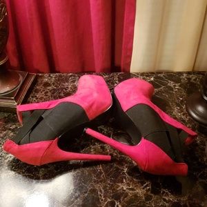 QUPID RED AND BLACK SUEDE PU