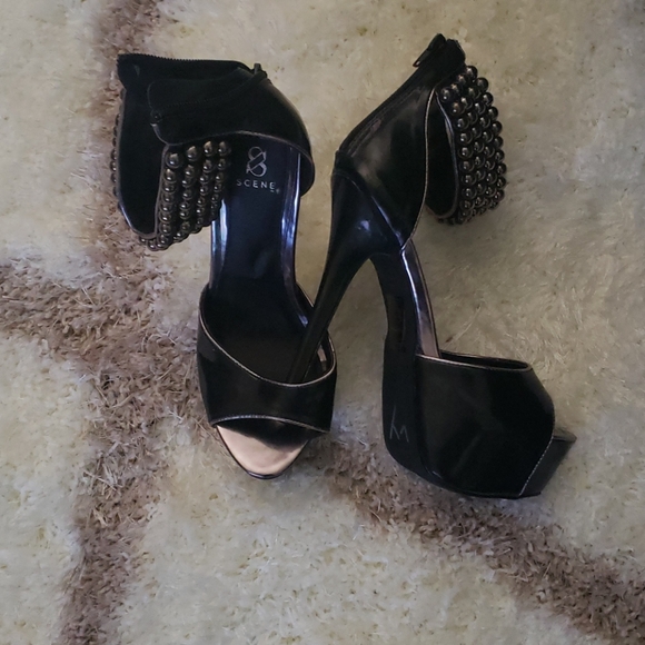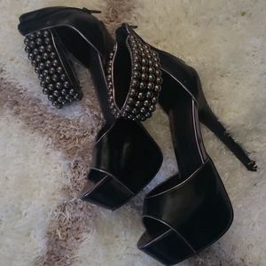 Black Patton Leather Heels with Bronze Beeads and they Zip up the Back