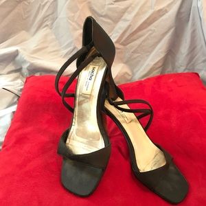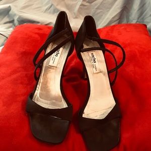 Sexy black open toe strapped heels.