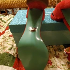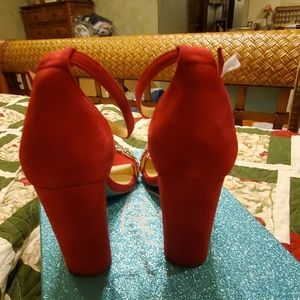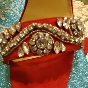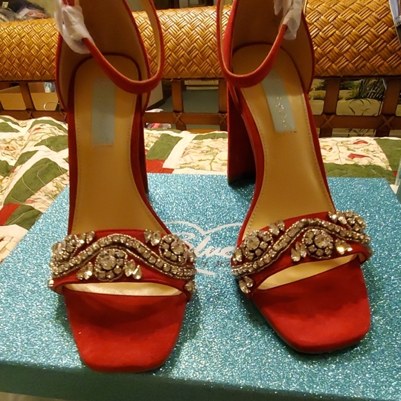 BLUE BY BETSEY JOHNSON JEWEL BLOCK HEEL SANDAL BNWB NEVER WORN. COLOR RED(SUEDE) SIZE 8M 3 3/4 INCH HEEL.