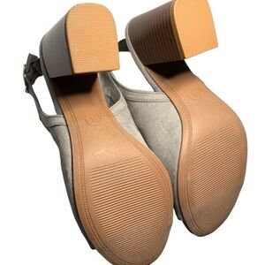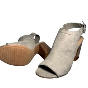 SHOES Light Gray Suede Open Toe High Heel Open Heel Shoe 3.5 Inch Chunky Heel